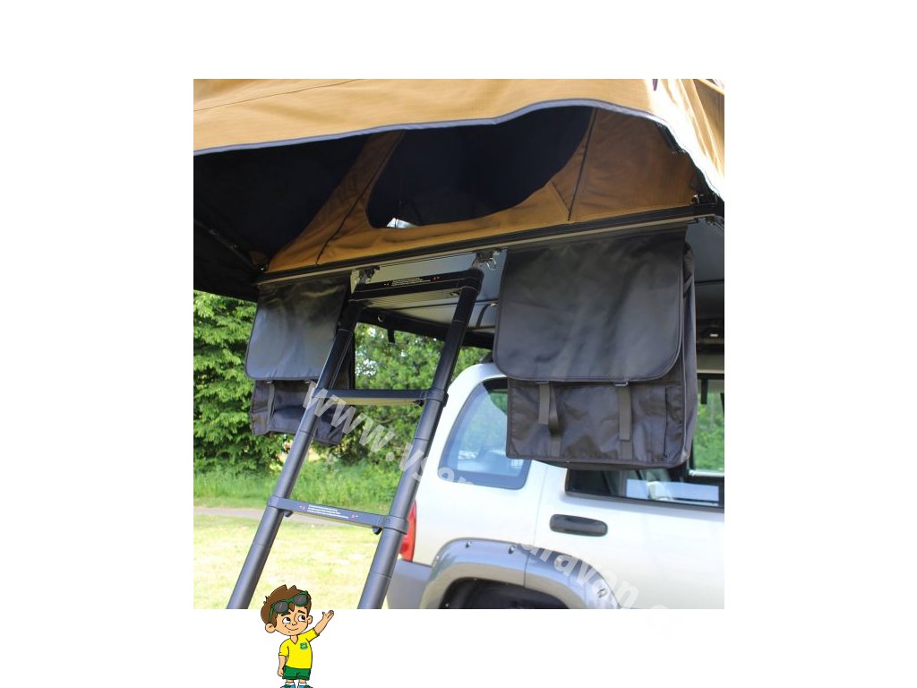 Stavění stanu je rychlé a intuitivní. Po otevření se boční markýzy automaticky rozvinou a pomocí dodávaných tyčí se snadno zafixují. Přístup do kryté předsíně zajišťuje integrovaný hliníkový žebřík, který poskytuje pohodlný a bezpečný vstup. Vnitřní prostor je navržen s důrazem na komfort – součástí je matrace, integrované LED osvětlení, střešní okno pro lepší ventilaci a přísun denního světla i moskytiéry, které chrání před hmyzem.
