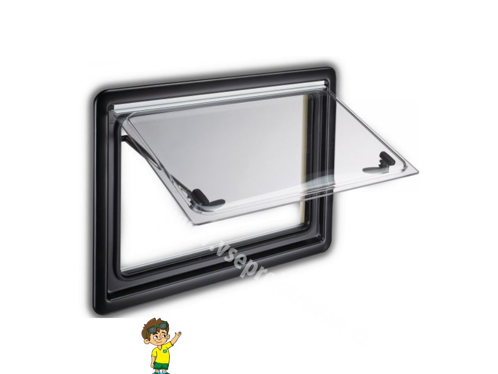 Výklopné boční okno pro obytná auta a karavany bez roletky a moskytiéry. Tento model vyrobený z vysoce kvalitního materiálu je výborně zpracován a snadno použitelný.