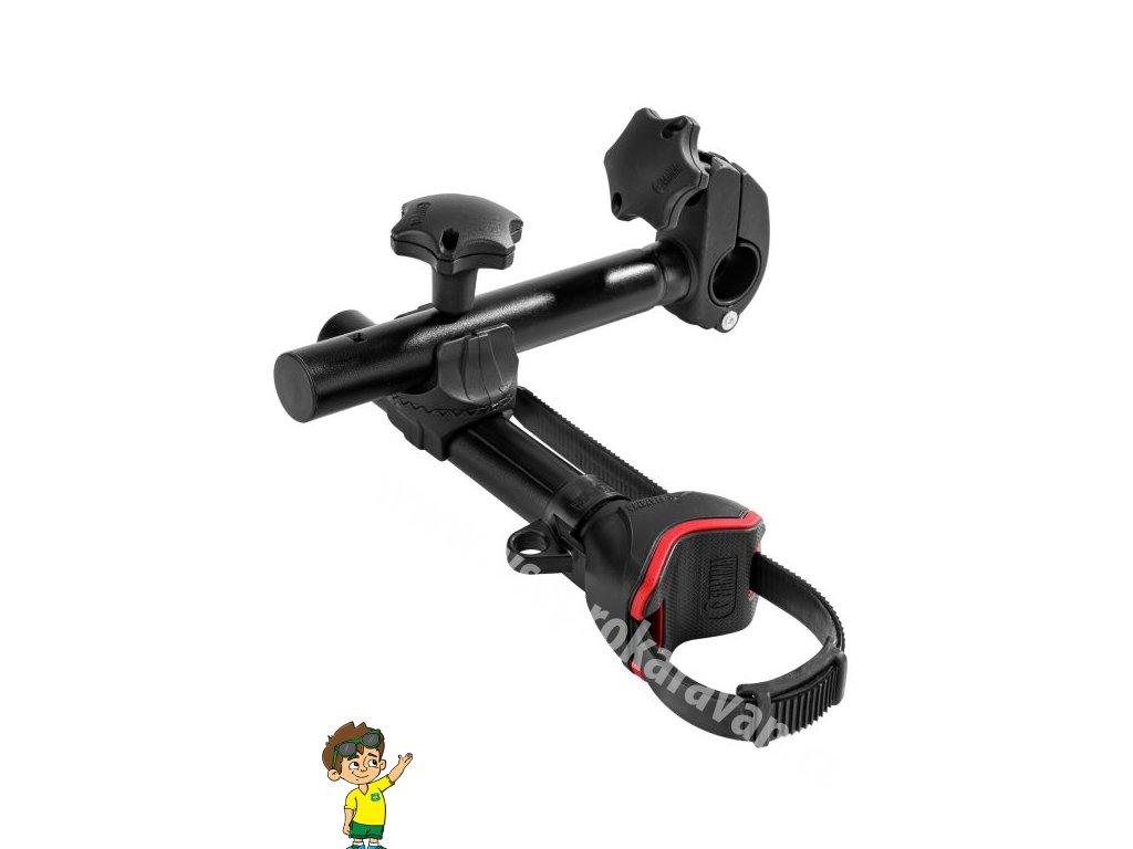 Držák kola Bike Block Pro S Deep Black je určen pro bezpečné a stabilní upevnění jízdního kola na nosič, zejména na nosiče řady Carry-Bike. Díky pevné konstrukci zajišťuje spolehlivé držení kola během přepravy a minimalizuje jeho pohyb. Je vhodný pro kulaté i oválné rámy kol o průměru přibližně 25–100 mm a lze jej snadno upevnit na nosné trubky nosiče o průměru 28–35 mm. Široká opěrná plocha s ochranným povrchem chrání rám kola před poškozením a poškrábáním. Ergonomický ovládací prvek umístěný v přední části umožňuje rychlé a pohodlné zajištění kola bez použití nářadí. Moderní provedení v barvě Deep Black dobře ladí s většinou nosičů kol a karavanových doplňků a je ideální volbou pro bezpečnou přepravu kol při cestování.