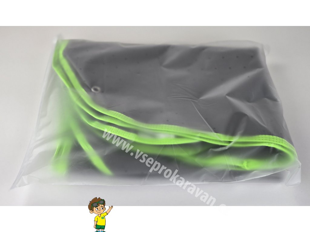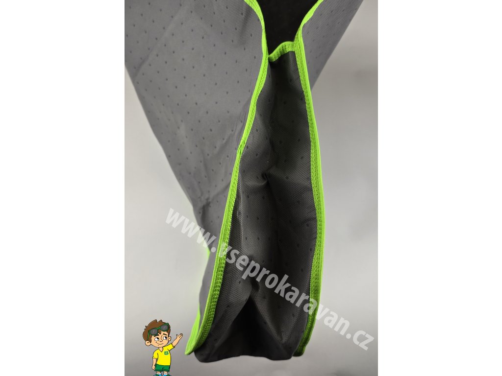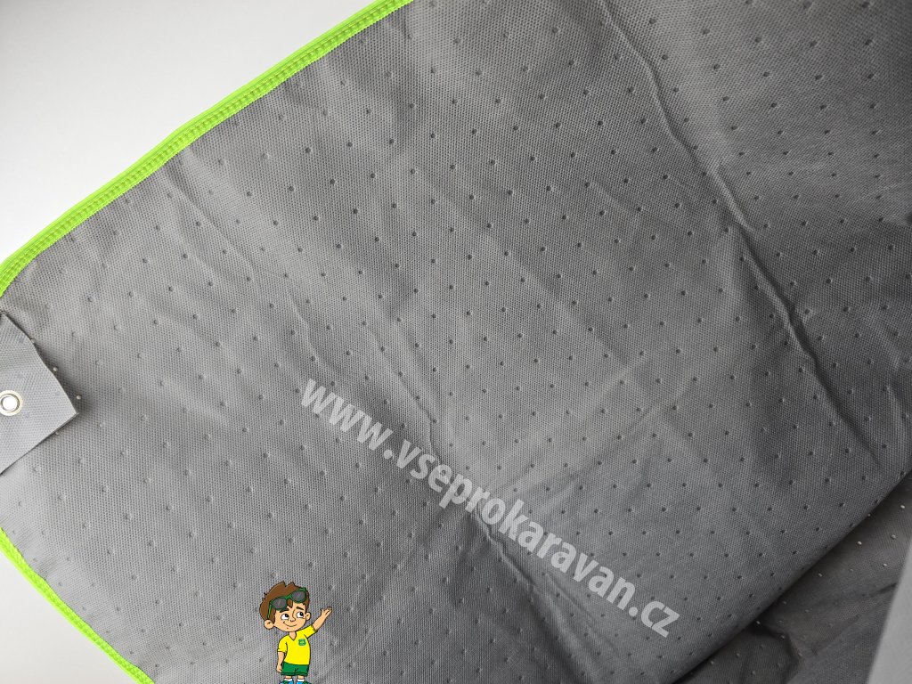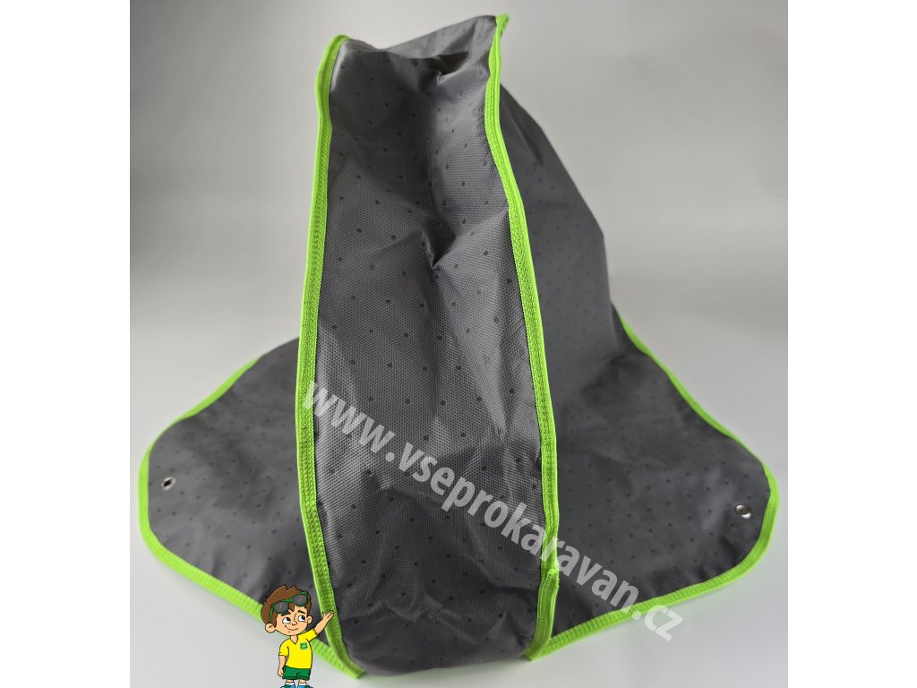 Nepromokavý materiál, odolný vůči UV záření. Upevnění pomocí gumičky nebo provázku.