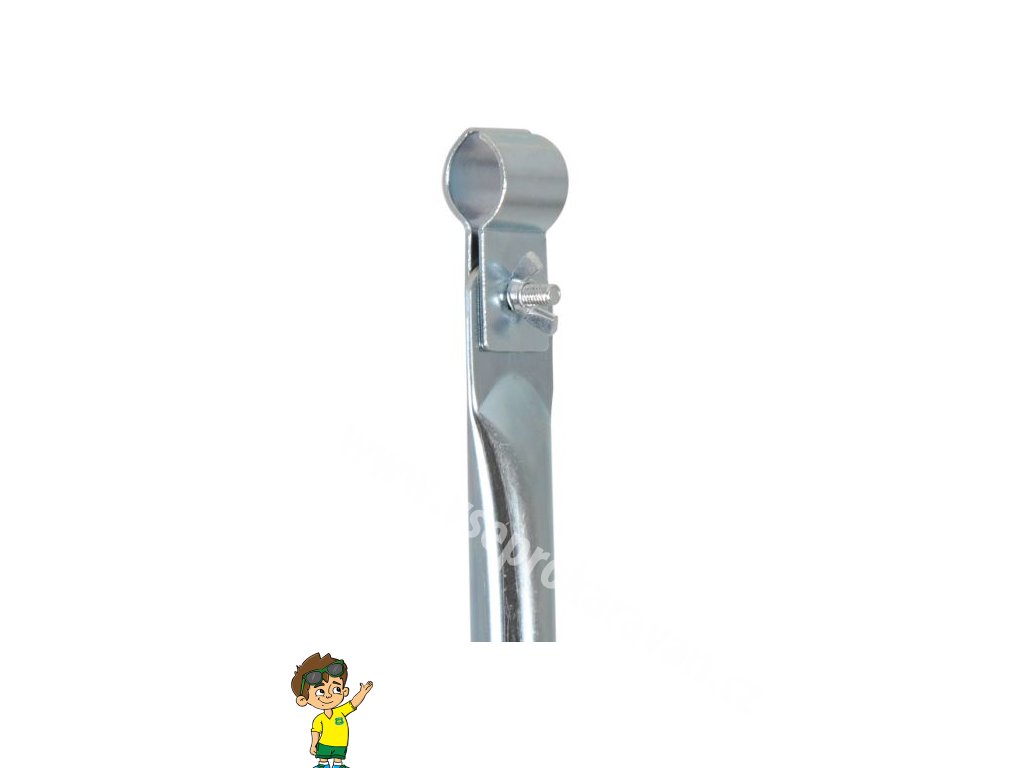 Vrchní část je vybavena svorkou, kterou lze upnout na tyče stanu do Ø 28 mm. Výška je plynule nastavitelná pomocí stavěcího šroubu v rozmezí 170 - 260 cm.