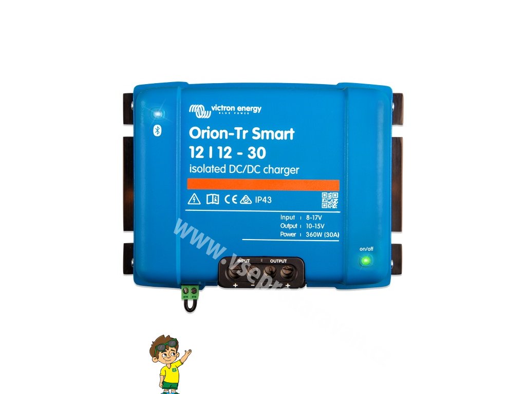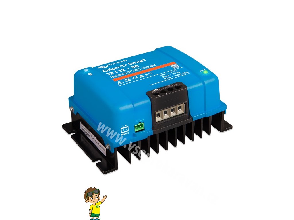 Nabíječka Victron Energy Orion-Tr Smart DC-DC je profesionální DC-DC adaptivní třístupňovou nabíječkou se zabudovanou funkcí Bluetooth. Je určena pro použití v duálních bateriových systémech ve vozidlech nebo na lodích, kde se k nabití servisní baterie používají (inteligentní) alternátor a startovací baterie. Jednotku lze monitorovat a programovat přes Bluetooth a ovládat dálkově pomocí dálkového spínače zapnutí/vypnutí. Nabíječka je také vybavena mechanismem detekce chodu motoru.
