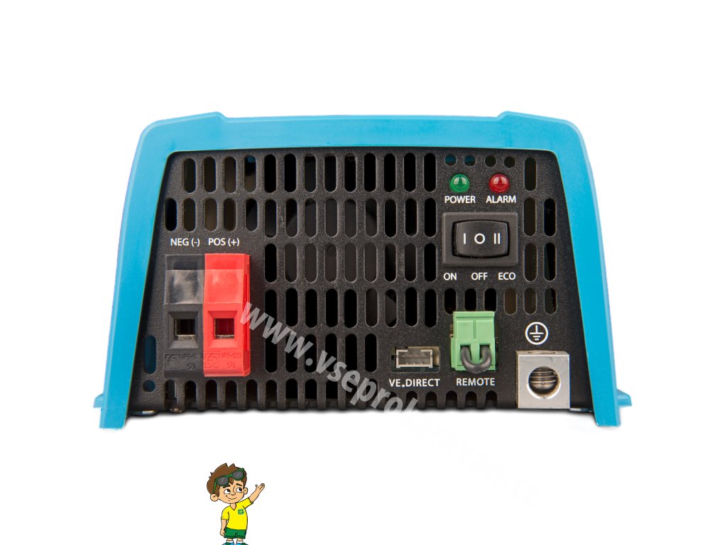 V režimu ECO se střídač přepne do pohotovostního režimu, když zatížení klesne pod přednastavenou hodnotu. V pohotovostním režimu se střídač na krátkou dobu zapne každých 2,5 sekundy (nastavitelné). Pokud zátěž překročí přednastavenou úroveň, střídač zůstane zapnutý.