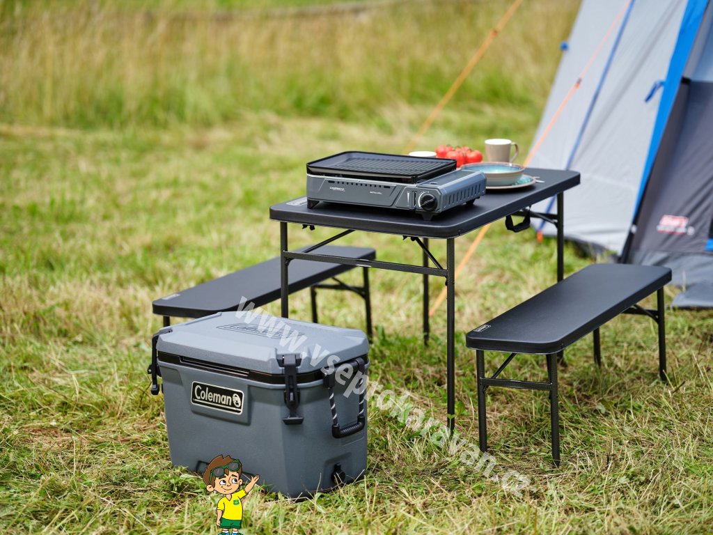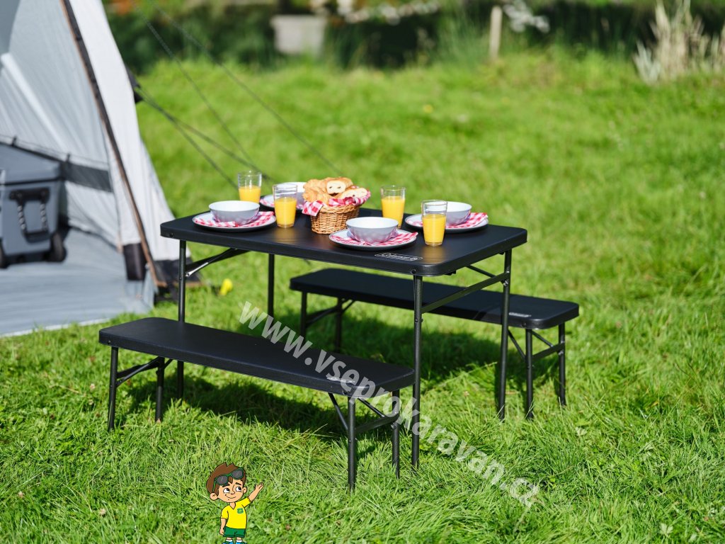 Stůl navržený pro pohodlné sezení 4 osob na 2 lavicích. Stůl se složí naplocho a uvnitř se uloží lavice. Ideální pro malou rodinnou dovolenou.