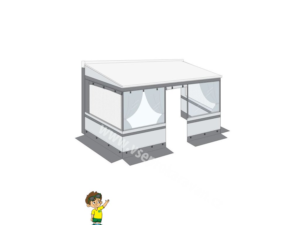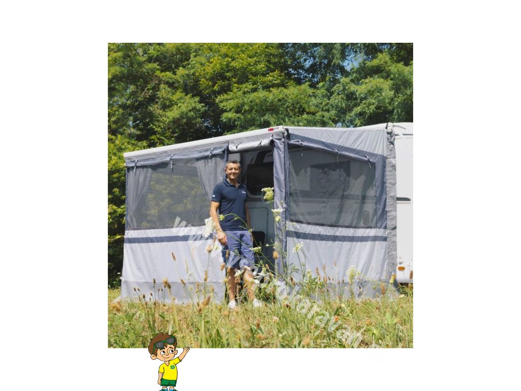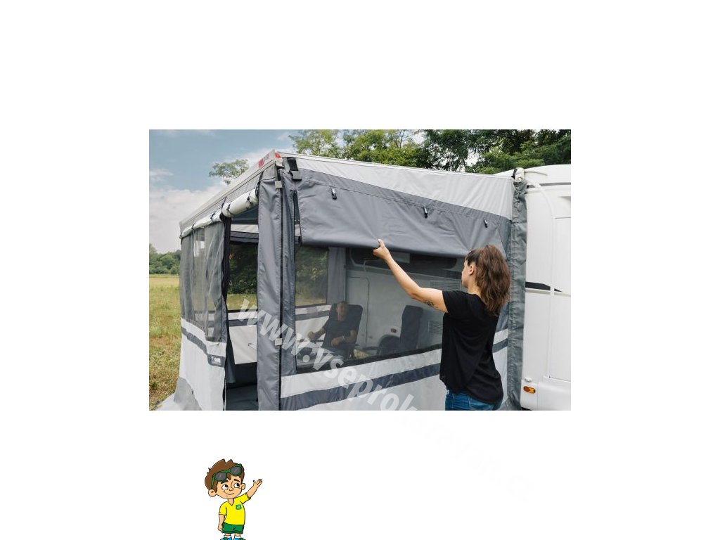 Kompaktní a lehké řešení ochrany soukromí a pohodlí pro markýzu Caravanstore a F35 Pro. Snadná a rychlá aplikace. Boční okna, která lze otevřít, jsou vybavena moskytiérami. Přední díl s rolovacím okénkem a moskytiérou se jednoduše zatáhne do vodicí lišty role a snadno se připojí k bočním dílům pomocí zipů.
