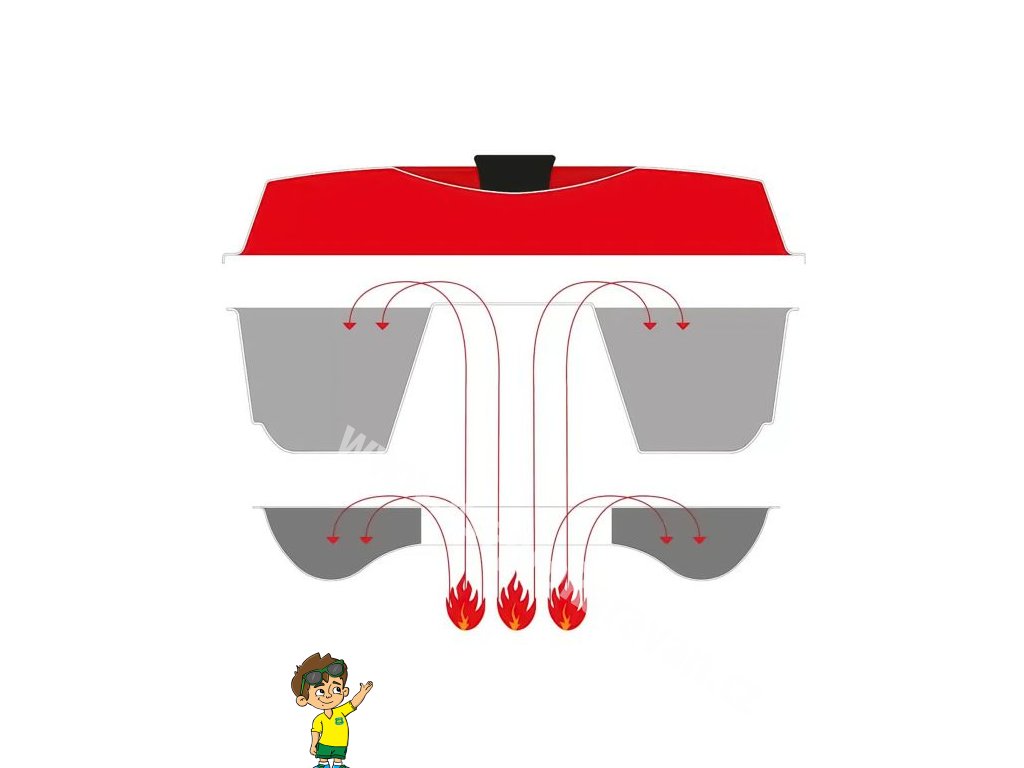 Přenosná trouba Omnia funguje na běžném vařiči – nepotřebuje elektřinu, a přesto dokáže poskytovat vrchní i spodní teplo. To je možné díky konstrukci, ve které teplo z hořáku proudí pod pečicí formu a zároveň se kolem otvoru ve víku vrací nahoru a zajišťuje rovnoměrné pečení.