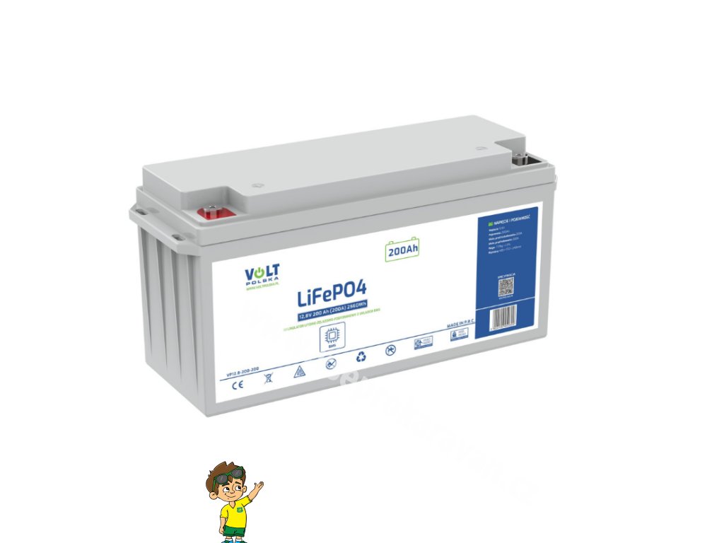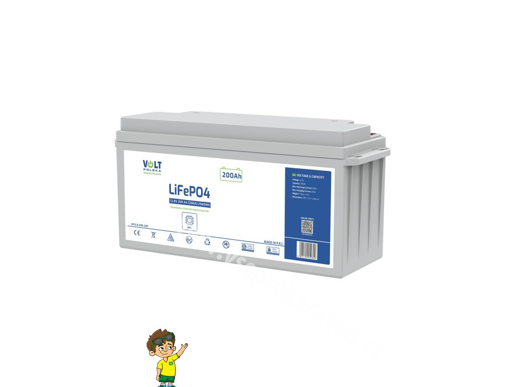 LiFePO4 (lithium-železitý fosfát) baterie s vestavěným systémem BMS se vyznačují především velmi nízkou hmotností a vysokou životností – přibližně 6 000 cyklů při DoD 60 %. Díky vysoké životnosti a velmi nízkému samovybíjení jsou baterie LiFePO4 ideální jak pro nouzové napájecí systémy, tak pro instalace mimo síť. Jejich nízká hmotnost umožňuje jejich použití v instalacích ve vozidlech (karavany, pojízdné občerstvení) a lodích. Vestavěný systém BMS zajišťuje dlouhodobé skladování baterie bez ztráty jmenovité kapacity a monitoruje procesy nabíjení a vybíjení baterie. Součástí balení je také pojistka 225A/32V.