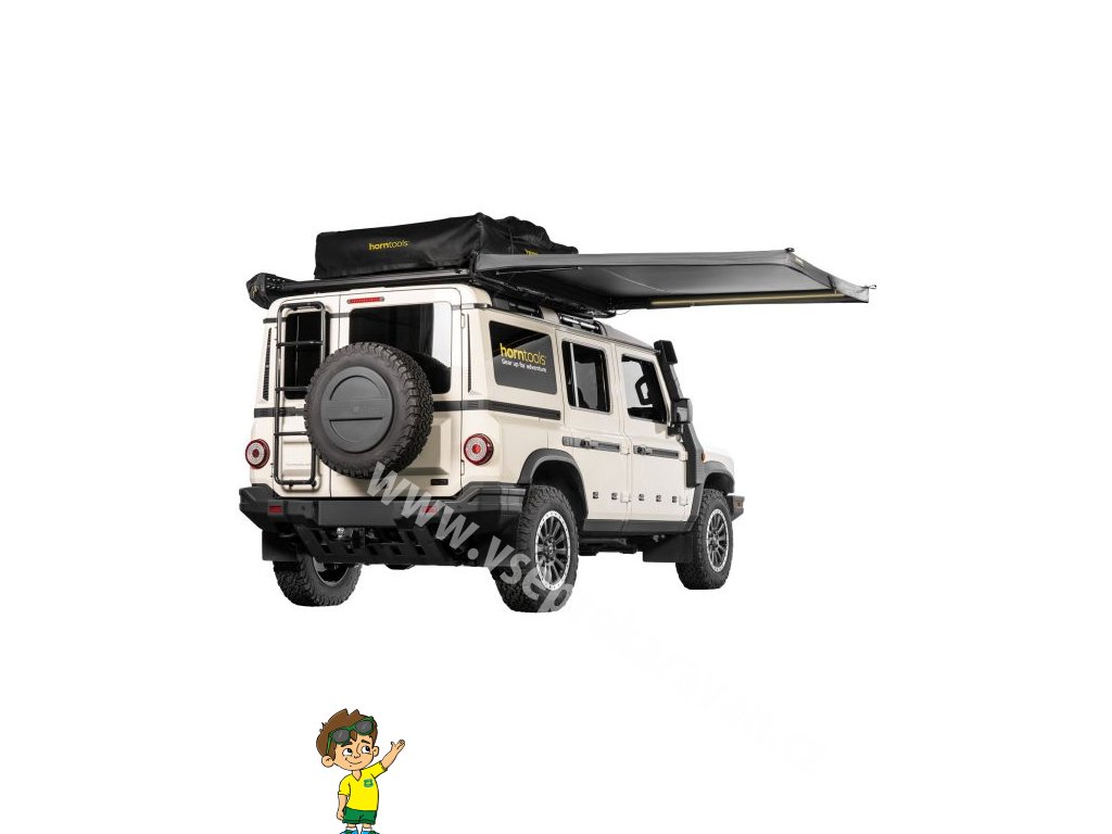 Markýza Horntools Horizon Straight nabízí chytré a rychlé řešení zastínění bez nutnosti použití pevných podpěr. Samonosná konzolová konstrukce umožňuje plné využití prostoru pod markýzou a maximální volnost pohybu. Díky integrovaným plynovým vzpěrám je rozložení otázkou chvilky a zvládnete ho během několika sekund, což oceníte při cestování, kempování i krátkých zastávkách na cestách.