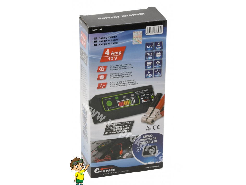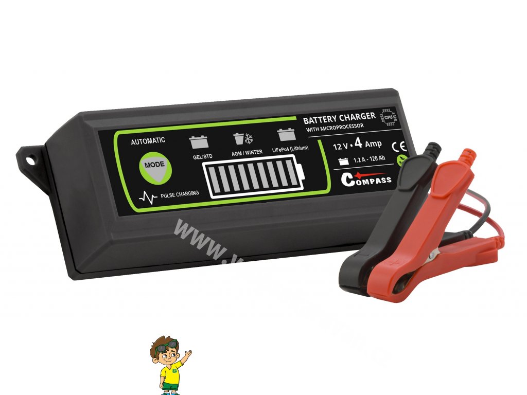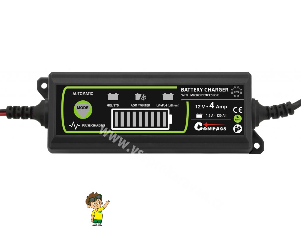 Plně automatizovaná mikroprocesorová nabíječka pro 12V 1,2-120 Ah baterie plněné elektrolytem (bezúdržbové baterie, AGM, gelové, ale i lithiové 12,8V LiFePO4 baterie a baterie použité ve vozidlech se Start-Stop systémem). Jedná se o baterie používané v automobilech, nákladních vozidlech, zahradních strojích, lodích, sekačkách, traktorech a dalších zařízeních. Touto nabíječkou lze mimojiné dobíjet i trakční baterie. Tato nabíječka umožňuje i nabíjení lithiových LiFePO4 akumulátorů, které vynikají vysokou spolehlivostí, bezpečností a výborným poměrem cena/výkon. V dnešní době se používají především jako záložní zdroj pro výrobní provozy, kanceláře, IT infrastrukturu nebo domácnost, jako baterie k fotovoltaické elektrárně, palubní baterie na lodi, hausbótu či karavanu jako náhrada za původní olověné. Využití nacházejí i jako energetické úložiště ostrovního domu a ve vybraných druzích elektromobility. Vestavěná elektronika zajistí bezpečné nabíjení, kdy je nabíječka po dosažení plného nabití baterie automaticky přepnuta do optimálního udržovacího pulsního režimu, čímž zvyšuje životnost připojené baterie. Nabíječku je rovněž možné použít jako orientační tester stavu nabití baterie.