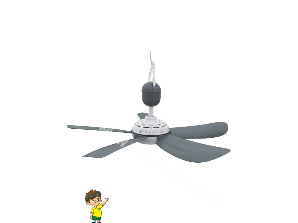 Skládací stropní ventilátor s vysokým průtokem vzduchu, ideální pro použití pod markýzami, ve stanech, karavanech nebo doma. Pět lopatek tohoto tichého ventilátoru je odnímatelných, což umožňuje kompaktní skladování, když se nepoužívá. Dodává se s hákem na zavěšení a 3metrovým napájecím kabelem.