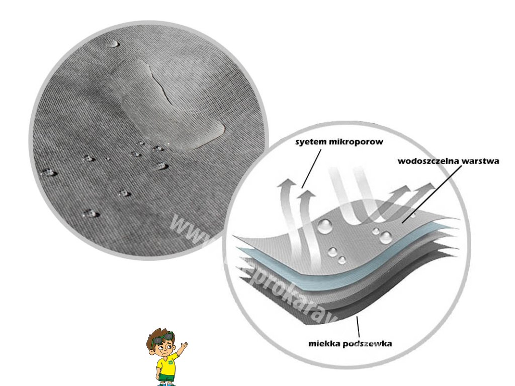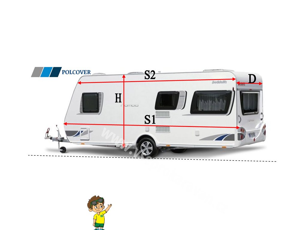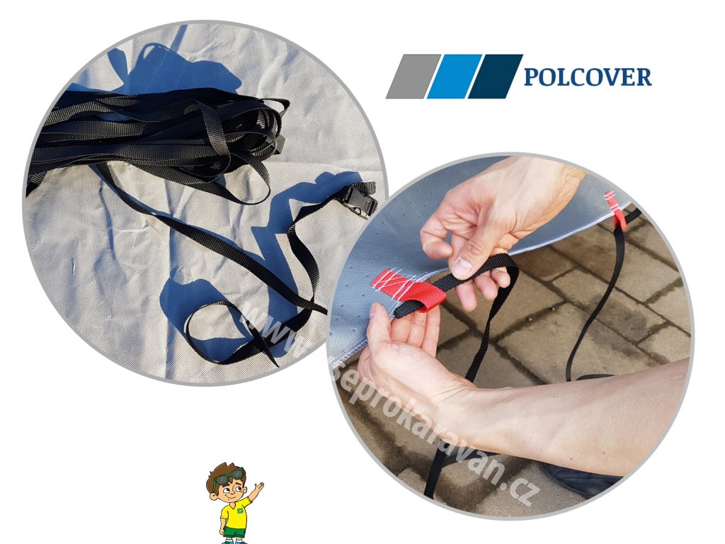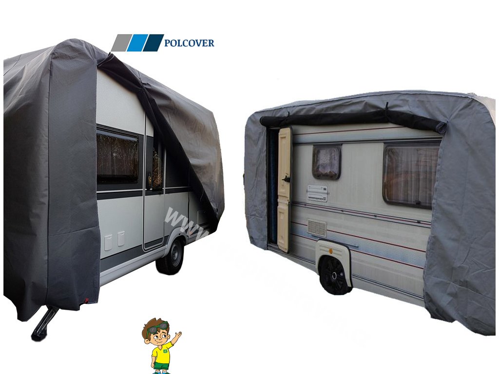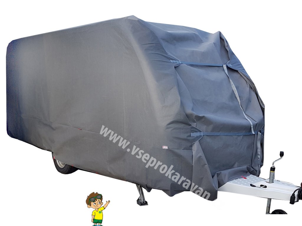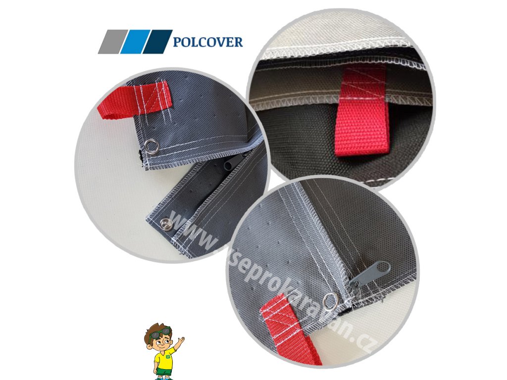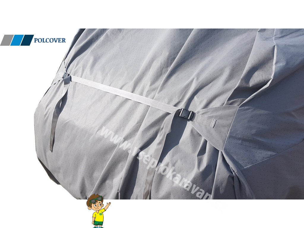 Kempingová krycí plachta od firmy POLCOVER z 5-vrstvého polypropylenového materiálu, extrémně trvanlivý a odolný vůči UV záření. Potah je nepromokavý a prodyšný. V bočních částech krytu jsou mikropóry zajišťující cirkulaci vzduchu pod krytem. Zevnitř je měkká černá podšívka, která chrání karoserii přívěsu. Kryt je standardně vybaven dvěma typy upevňovacích prvků - pásem ve spodní části kolem krytu a dvěma vodorovnými pruhy vpředu, které upevňují kryt na délku, díky čemuž je dokonale chráněn před větrem.