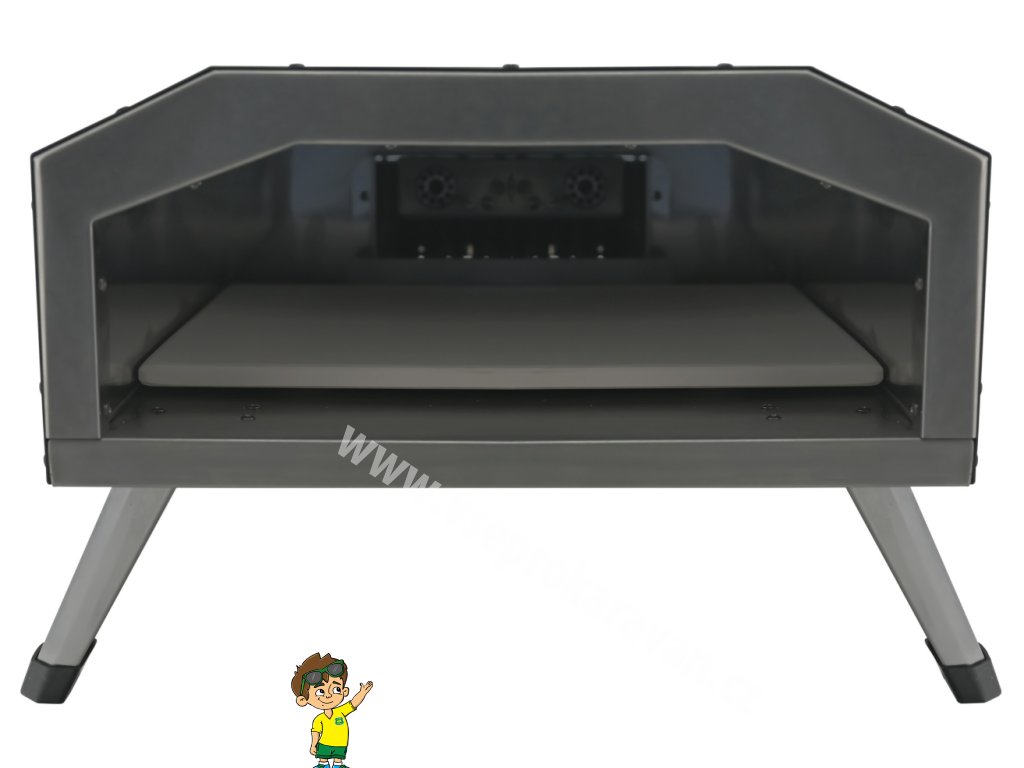 Konstrukce pece je vyrobena z odolné nerezové oceli, která dobře snáší vysoké teploty a zároveň se snadno udržuje čistá. Tři sklopné nohy jsou praktickým detailem, který oceníte při přenášení i skladování – pec lze jednoduše složit do kompaktního tvaru a bez potíží převézt v autě nebo uložit v menším prostoru. Přestože váží přibližně 12,5 kg, manipulace je pohodlná a pec působí stabilně.