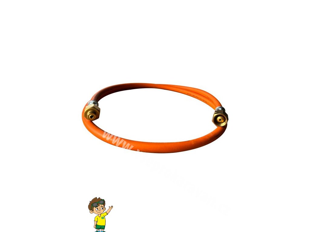 Hadice o délce 1,2metru pasuje z jedné strany na kartušový spotřebič na závitové kartuše a druhá koncovka pasuje na regulátor tlaku 2bary typ UNP01040.