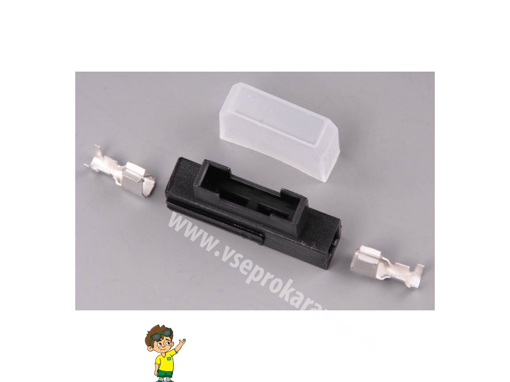 Pojistkové pouzdro pro plochou pojistku se skládá ze dvou konektorů, vlastního pouzdra a krytu. Pouzdra je možné řadit zasouváním.
