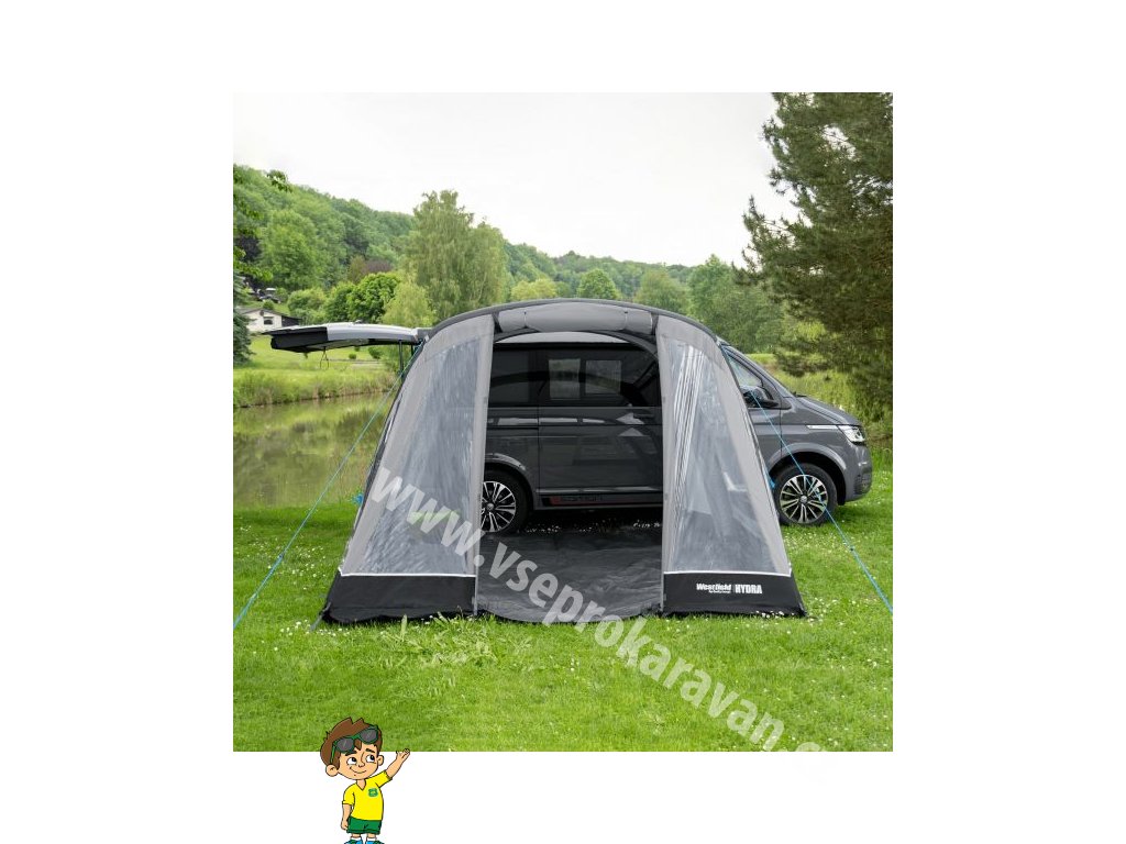 Nafukovací předstan Westfield Hydra je vhodný pro dodávky a středně velká obytná auta. Díky nafukovací konstrukci lze stan rychle sestavit i složit, což oceníte zejména při víkendových pobytech. Díky ní můžete plně využít podlahovou plochu a mít dostatek prostoru nad hlavou pod celou střešní plochou.