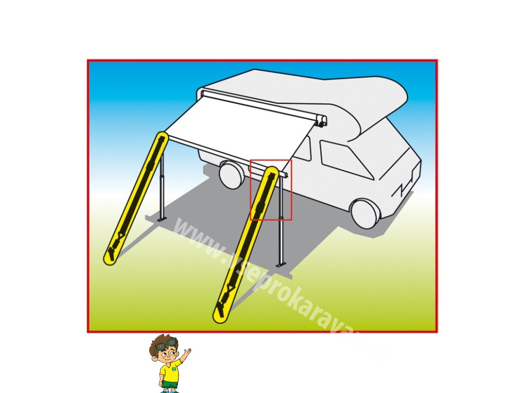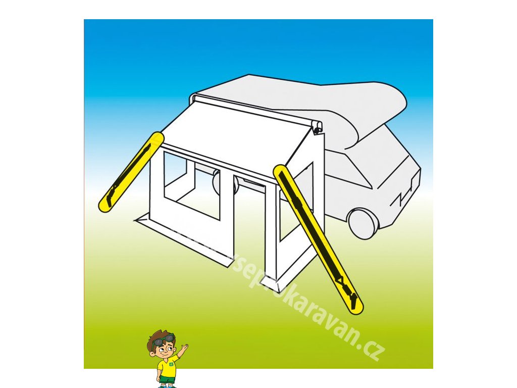 Upínací popruh zajišťuje bezpečné upevnění markýzy při nepříznivých podmínkách. Speciálně vyvinutý pro markýzy CaravanStore a F35pro. Systém Tie Down S CS lze snadno připevnit k podpěrným nohám markýzy a zajistit tak pevné uchycení.