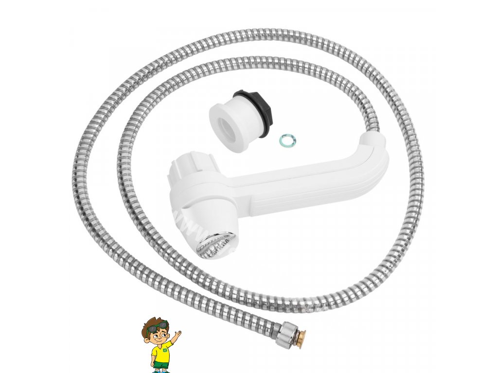 Ruční sprcha s mosazným vnitřkem a integrovaným ventilem pro regulaci proudu vody a spínačem, odolnou hadicí, stolní rosetou s maticí, těsnění a distanční průchodkou. Nastavení sprchy.