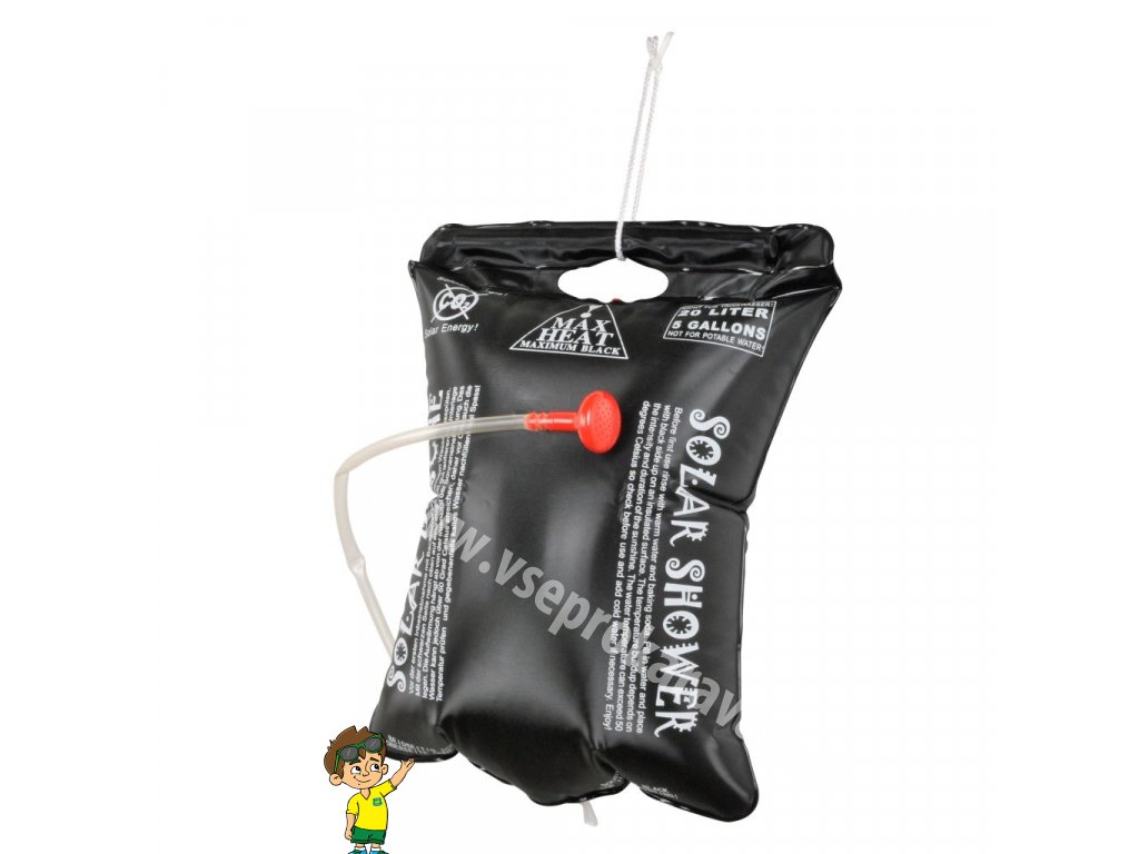 Komfortní solární sprcha ohřeje 20 litrů vody. I při zatažené obloze, ohřívaná voda v 20 litrovém sáčku až na 40° C.