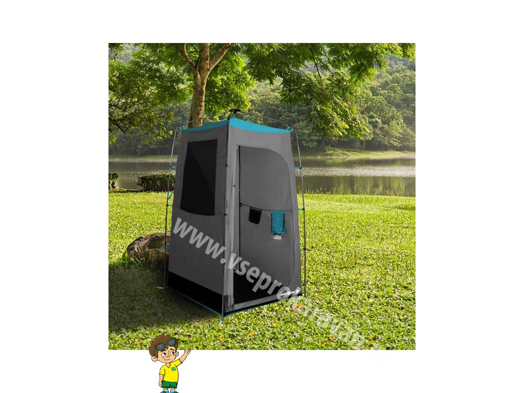 Univerzální sanitární a víceúčelový stan s robustními ocelovými tyčemi, odnímatelnou podlahou a uzamykatelným gázovým oknem. Včetně různých funkčních detailních řešení a praktické tašky