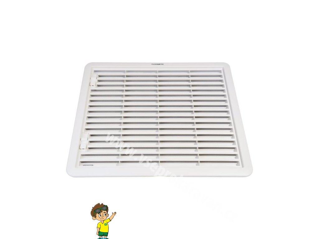 Větrací mřížka Dometic LS 230, která umožňuje optimální odvod tepla od lednice a zabraňuje tím jejímu přehřátí. Na vnitřní straně mřížky se nachází moskytiéra.
