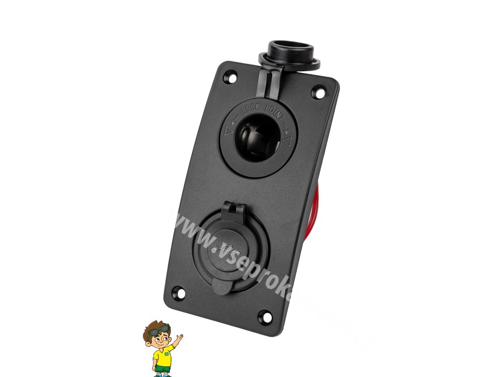 Napájecí zdířka 12V+2xUSB 5V/2,1+1A s rámečkem