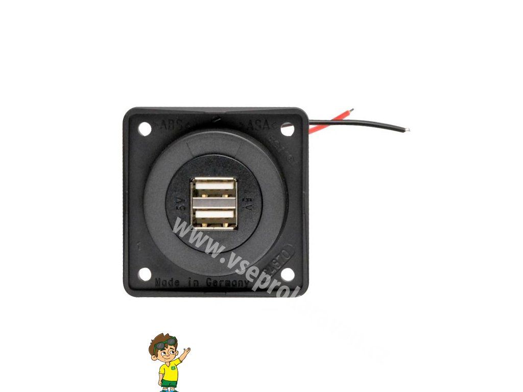 Dvojitá USB zásuvka Berker se dvěma porty typu USB-A pro nabíjení mobilních zařízení jako jsou tablety, chytré telefony, navigační zařízení a digitální fotoaparáty. Součástí jsou propojovací kabely o délce 15 cm.