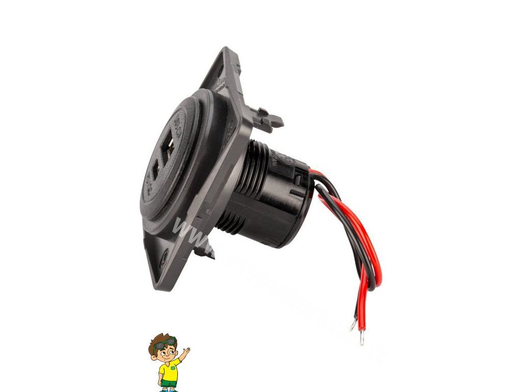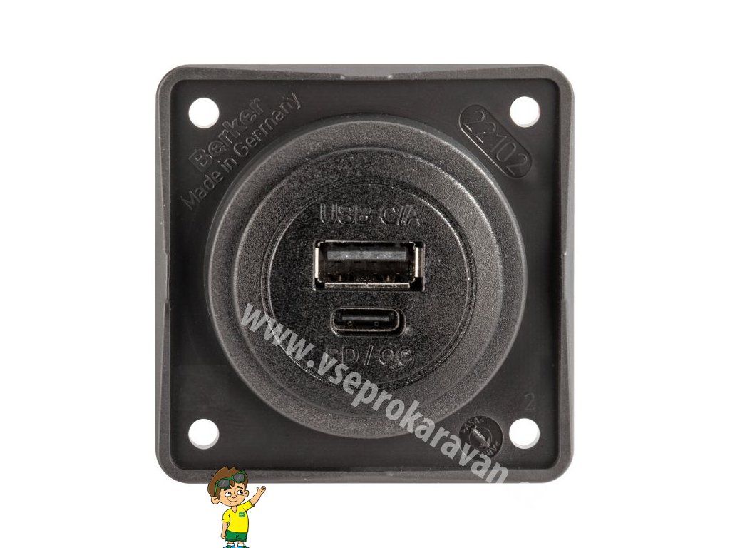 Zásuvka nabízející port USB-A a USB-C pro nabíjení mobilních zařízení jako jsou tablety, chytré telefony, navigační zařízení a digitální fotoaparáty.
